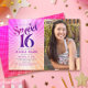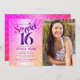 Photo Sweet 16 Groovy Pink Orange Gradient Retro Invitation