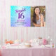 “Happy Sweet 16”. Celebrate her birthday with this groovy boho retro, personalized photo banner. On the left side, fun, trendy, bold purple and navy blue typography with modern sans serif typography overlay a background of pop light turquoise and purple ombre gradient rays with white dots. Add her custom photo on the right. Personalize the custom text with your daughter’s name, birthday and edit the greeting copy if you wish. Choose from multiple sizes. (If you want to go larger, just make sure your custom photo is large enough to be printed at a bigger size without being pixelated or blurry! You will get a warning before purchasing if it looks to be a problem). This stylish photo welcome banner is guaranteed to set just the right tone for her special celebration! Matching invites, plates, napkins, stickers and other birthday goodies are also available in this cool and unique collection.