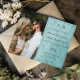 Plain white envelopes are included with paper invitations and will come to fit the invitation size you select. If you don’t need the envelopes, you may choose to not receive them by selecting the dropdown below "Envelopes" and choosing "None." If you’d like to have a design on your envelopes, you can browse all of these available envelopes to find the design that complements your Photo Teal Damask Wedding Invitation.