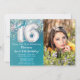 Photo Teal Silver Glitter 16th Birthday Invitation