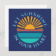 A round photo template on a dark blue background. Click personalize to change the sunset to your own image, and the text to your own, or buy it as is.