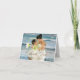Photo thank you cards with fancy script on white low opacity ribbon.