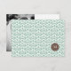 Photo Thank You Notes. A light jade pattern with monogram. Stylish and modern flat card photo thank you notes on invitation stock paper. Endless color choices and color combinations. Easy to personalize by replacing the text in the text boxes to the right of this Thank You Note as well as your wedding photo. These pattern thank you note flat cards can be made into thank you notes for those who attended your graduation, birthday, anniversary, holiday and other special events. If you want to change the color on the front of these thank you cards you may do so by clicking the "customize it" button. There you will find editing tools to the right of the image. To select a different background color click > "edit" > "background" > pick a color or if you know your hex color code enter it in the advanced color section (text box) in the color chart and be sure to click "done" when prompted or the color will not stay. The brown circle under the monogram is an image and if you need a different color simply contact us for a color change. You may change the color of the text as well in the "customize it" section. Click on "Customize it" if you haven't already and click on the text you want to change the color of. Once you have done that you will notice a little box which will be the color of the text already selected. Click on that color box and a color chart will open for you to select a different color for the text selected. Be sure to click "done" when prompted. When you have completed your custom photo thank you note cards simply select the number of thank you notes you will need and add to cart to check out. Thank you for shopping at Pine and Berry.