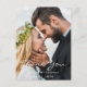 On front: add your own wedding photo, portrait/vertical size. With the text: Thank You written with large modern, handlettered style script. Templates for your names and wedding date. White text.