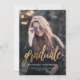 Modern graduation announcement featuring a custom vertical photo. The word "graduate" appears in gold faux foil script, with the graduate's name, school, and year of graduation below in white sans serif font. Easily replace the sample image with your own graduate's photo. A black gradient screen helps ensure the text pops. The reverse is solid black. Ideal for high school or college graduation.