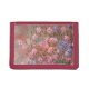 The bag is adorned with a vibrant pattern of red and lavender flowers, creating a striking contrast. The red flowers are bold and rich, while the lavender blooms add a soft, delicate touch, blending harmoniously to give the bag a unique and eye-catching design.