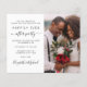 Budget-friendly modern wedding reception save the date announcement featuring your photo and "Happily Ever After Party" in a mix of simple typography and a stylish script with swashes. Personalize your reception save the date details and add your names in a signature-like script.