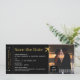 Elegant Glam Chic Photo Save the Date Boarding Pass for a Destination Wedding or Travel Theme Reception Party features a large couple picture and with retro vintage computer printing fonts for an authentic classic look and a totally editable ticket template so you can create a unique and creative elegant black and gold save the date for your wedding abroad.