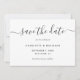 Create a beautiful wedding photo save the date card with an elegant script font. Easily personalize this photo wedding save the date card with your image and wedding details. This save the date works best with a landscape photo. However, there is a portrait photo save the date template within our collection in case you prefer that.