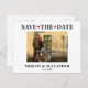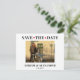 This Save the date postcard is a mixture of moderate simplicity and childish charm, making it the great choice for announcing your upcoming wedding. Childish charm is coming with two little red hearts in the title.