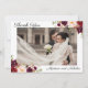 Send our pink, burgundy, and wine flower photo wedding thank you cards to let your guests know how much you appreciate them. The wording is completely customizable - if you need to change the font, font color, size or the placement of the text boxes just click on the "Click to customize further" button to change those things. You can easily delete the thank you message before adding the listing to your cart if you prefer to write a handwritten note. Be sure to check out our large selection of coordinating items by browsing the Marsala Floral Wedding collection!