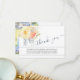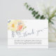 Funeral thank you card with elegant handwritten script and watercolor arrangements of of flowers in peach yellow and gold. The template is set up for you to add an 'in loving memory' photo to the back with your loved one's name as well as your personalized message of thanks on the front.