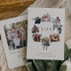 A festive holiday card design that features eight of your favorite photos arranged in a round wreath design accented by a single black bow at the bottom. "Joy" appears in the center in classic white lettering on a warm ivory background, with your custom greeting and names at the bottom. Personalize the back with an additional, larger photo and a personal message for a total of nine photos.