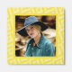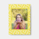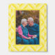Hang this Photo Yellow Three-Tone Diamond Pattern Picture Ledge on your wall. It features a geometric diamond pattern in three shades of yellow surrounding a photograph on three different sized frames. Personalize them with your favorite pictures. Give your walls an extra pop of color.