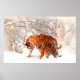 Photograph of a tiger and cub playing in the snow. poster