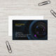 In this photographer business card, a closeup of a Carl Zeiss lens forms the main image over a dark background. Customize it with your name and details.