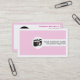 Photographer feminine business cards in pink, featuring a camera in the front and your initials/monogram on the back along a QR code for more info.