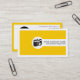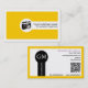 Photographer feminine business cards-yellow, featuring a camera in the front and your initials/monogram on the back along a QR code for more info.