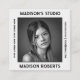 Modern and chic design for photographer business card. The background is white smoke which makes the card simple, stylish and trendy. The design contains black and white customizable photo wich recalls vintage designs. The QR code and social media to personalize on the back add a smart and sophisticated touch to the design and allows your customers to scan and connect with you in social media.