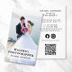 Make a lasting impression with this modern business card for wedding and other professional photographers featuring a photo from your portfolio overlayed with your name and title in a mix of simple and contemporary bold typography. On the back, add your contact details and social media user name, and input a url address to create a QR Code that clients can scan to connect to your website, portfolio, social media profile, or any other platform that showcases your work.