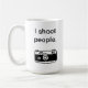 Now you can let other's know that you like to shoot people when you enjoy your hot beverage in this mug. Bring this mug to your tea party and let all your friends know how much you like shooting people. Perfect for the minimalist hipster photographer in you. The mug is friendly for people that are left and right handed! Enjoy your drink any way you want and still display the same image! As you can see by my store name, I'm poor. So when you buy this mug you'll be helping me earn money towards a new camera.