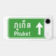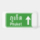 Funny Phuket, Thailand Ahead Bilingual Thai Highway Traffic Sign written in Thai and English Language Scripts.