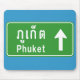 Funny Phuket, Thailand Ahead Bilingual Thai Highway Traffic Sign written in Thai and English Language Scripts.