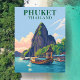 Escape to the stunning beaches of Phuket, Thailand, with this vintage-style illustration postcard. Featuring long-tail boats, palm trees, and boat, this collectible postcard evokes the timeless beauty of Thailand's tropical location