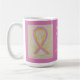 Phyllodes Tumor is a rare breast cancer. It uses a pink and gold awareness ribbon to show support for its awareness. This custom mug features two pink awareness ribbon guardian angel art paintings with the message "I Hope and Support Phyllodes Tumor Awareness!" The custom pink awareness guardian angel ribbon art picture coffee cups or mugs can be customized with personalized messages to make great cause mugs for awareness fundraisers, awareness cup gifts, or other special events or cause support occasions. Make your own customized words for a personal message of hope and support to share!