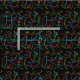 Unique physical therapist fabric in black with bright, colorful curved lettering. “Get moving. Stay moving”.