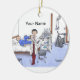 Lightweight, smooth, pure white ornament with nice sheen. Perfect size to be seen from across the room ... and to attract closer inspection! Price was great for ordering enough for the whole family! Clear, bold black design just as requested. Matches the order exactly. Just so nice!
