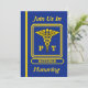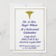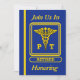 This blue and gold invitation is decorated on the front with the retired Physical Therapist caduceus shield. You can customize this card by placing your information into the boxes provided.