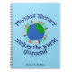 Physical Therapy Makes the World Go Round. A cute and inspirational PT quote gift for your favorite physical therapist. The notebook features a group of people holding hands around the blue and green planet Earth. Come together to make a change by helping people with this motivational monogrammed physical therapists present.