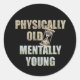 Lots of aches and pains, but the mind is "sharp as a tack"? Here are the stickers for you. The words "physically old" are adorned with dead branches while the words "mentally young" are adorned with fresh, green bushes. Light-hearted commentary on the process of growing older, these are designed specifically for aging adults with a sense of humor. Perfect gifts for Senior Citizens, for over-the-hill celebrations, or for yourself.