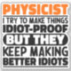 Funny Physicist Sayings "Physicist I Try To Make Things Idiot Proof But They Keep Making Better Idiots". Grab this Funny Physicist design as a funny gifts for an awesome mom, dad or friend.