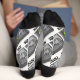 Quantum physicists will enjoy this wry scientific attitude pair of crew socks that feature Schrödinger's cat thought experiment. Illustration of Copanhagen interpretation of quantum mechanics with the cat simultaneously dead and alive. Make others think in a quantum, subatomic entangled manner today and let everyone know that physics Is phun (fun)!