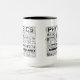 Physics Mug. With the following words at the back - Physics, Acceleration, Mass, Particles, Thermodynamics, gravity, hawking, big bang, black holes, electromagnetic, maxwell, quantum mechanics, strings, radiation, tesla, force, e=mc2, gas, atom, proton, nuclear, hertz, radiation, gamma , absolute 0, nanotech, orbit, frequency, weight