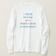 I love this shirt. I had written to the artist asking her if this picture was available on a shirt, and she wrote me back telling me where I could find the shirt. These shirts can be custom made to have a different saying. I loved this saying and went with it. The artist wrote me back later to tell me that she had seen my order go through. How's that for service? Pretty special. It's just as displayed. Perfect!
