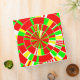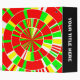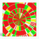 A colorful abstract design made up of multi-colored segmented concentric circles like a multi-layered pi chart.
