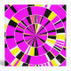 A colorful abstract design made up of multi-colored segmented concentric circles like a multi-layered pi chart.