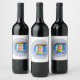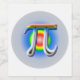 Wine bottle labels with my unique design of a chrome-look pi symbol on a multi-color circle.