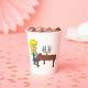A woman with yellow hair sitting playing the piano. This design looks really effective on these Paper Cups