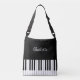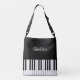 Cross body bag contains a piano keyboard design and a text “Charlotte”, this bag is a personalized gift you can change the text “Carlotte” to your name on the front and back side or add two different texts, you can still add/remove more texts as you want and change fonts. This cross body bag can be given as gift for music teachers, instructor, piano player, piano composer, musician, piano lover.