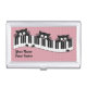 Design features a trio of curious cats peeking at mice over a wavy piano keyboard. Soft pink polka dots serve as background. Personalized business card case provides spaces for a name and title, or any other text of your choice. Design tip: For long names you may need to adjust text size down.