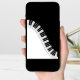 A curving black and white piano keyboard divides black from white in this whimsical graphic design that is sure to delight the musician.
