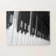 A close-up of the keys of a piano keyboard, the keys a smooth and shiny white and black, and the piano itself in a glossy black lacquer. The perfect gift or look for a musician, composer or songwriter,