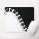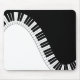 A curving black and white piano keyboard divides black from white in this whimsical graphic design that is sure to delight the musician.