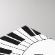 Classic black and white keyboard with a curved flair. Added music notes add a festive look.