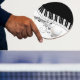 Classic black and white keyboard with a curved flair. Added music notes add a festive look.