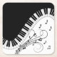 Classic black and white keyboard with a curved flair. Added music notes add a festive look.